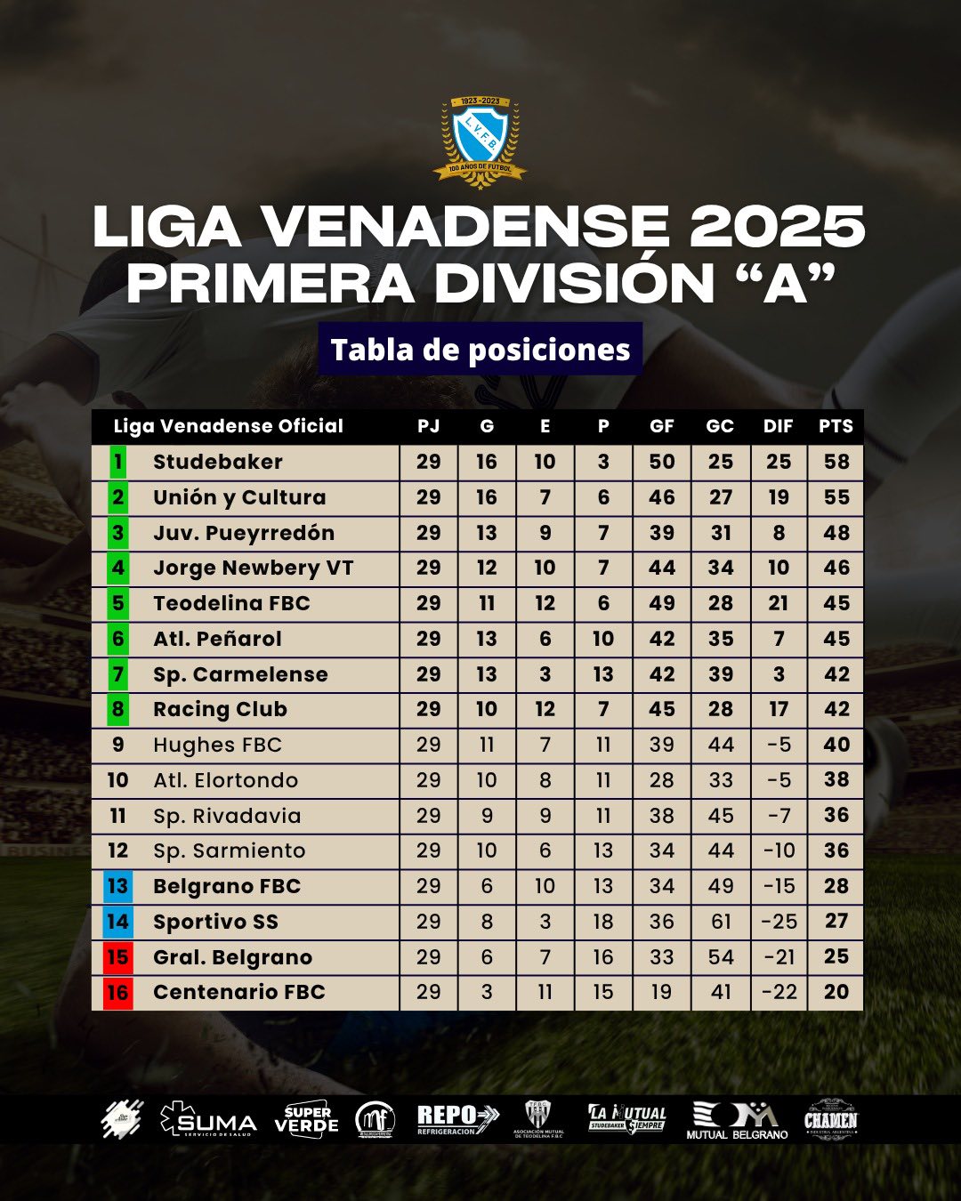 Compartimos los resultados y actualizamos la tabla de posiciones de los partidos disputados por la Fecha 14 (Vuelta) de la Primera División “A” de la #LigaVenadense