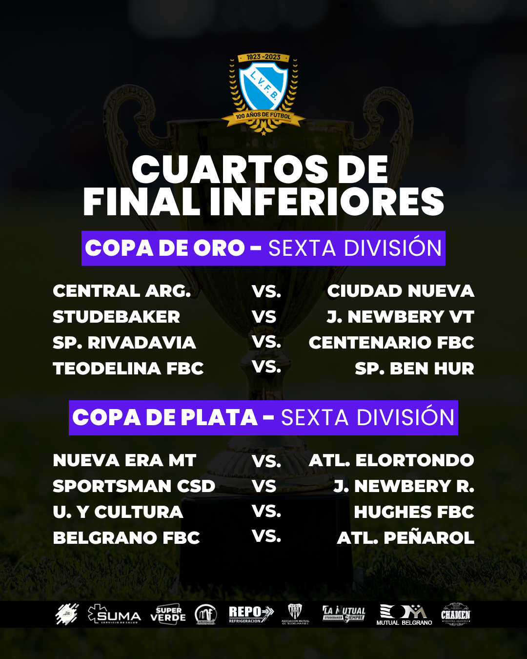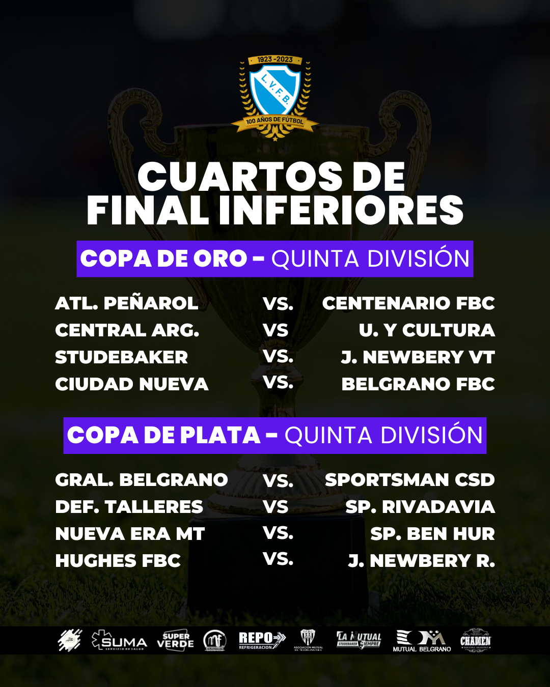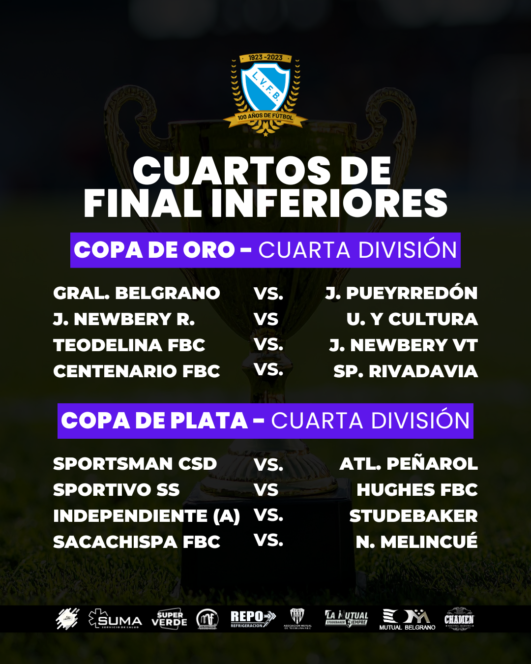 Compartimos como quedaron conformados los partidos a disputarse en la Inferiores de la #LigaVenadense para los Cuartos de Final en Copa de Oro y Plata de Cuarta, Quinta y Sexta División.