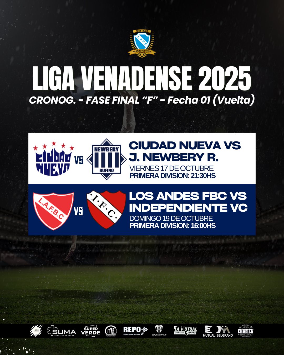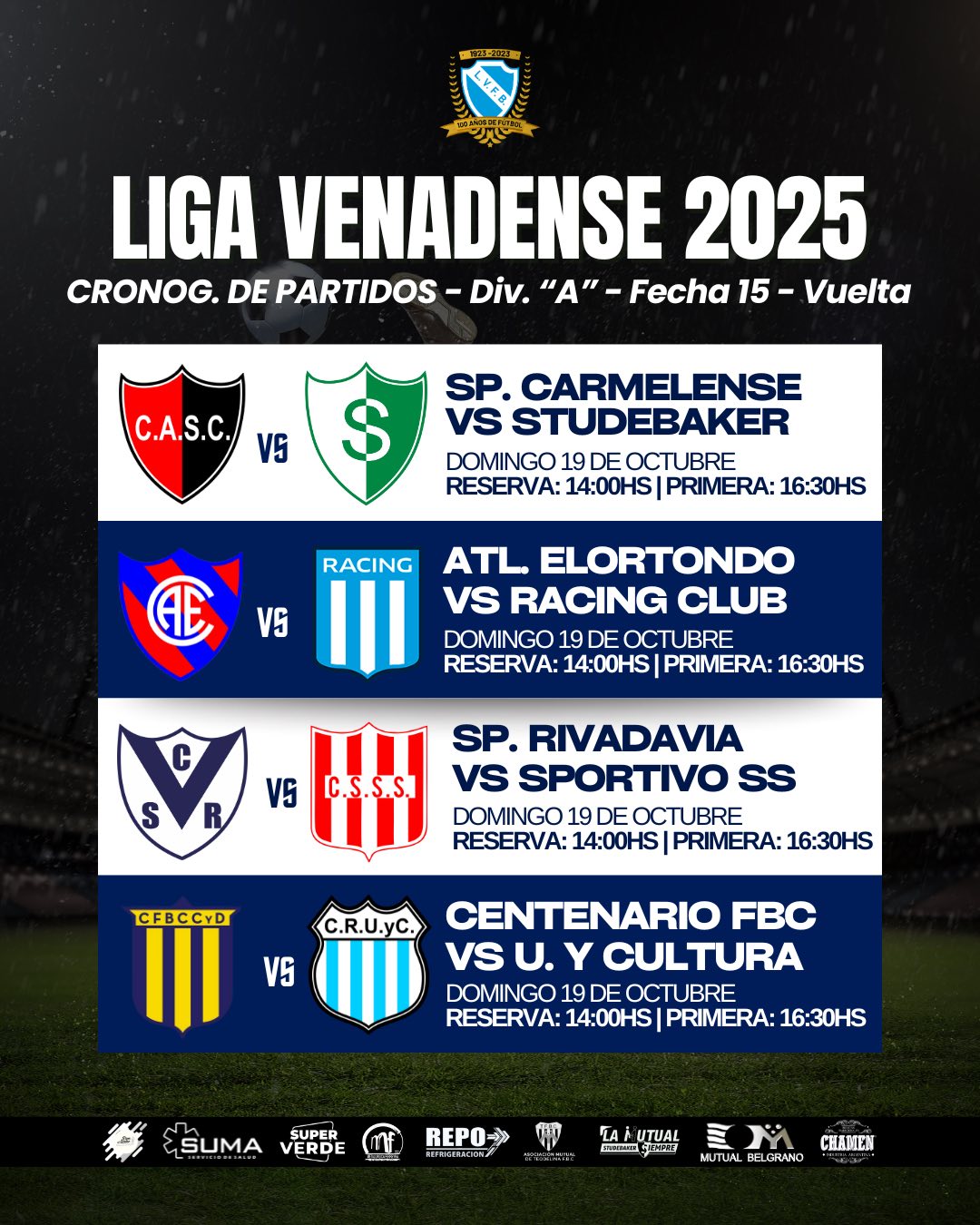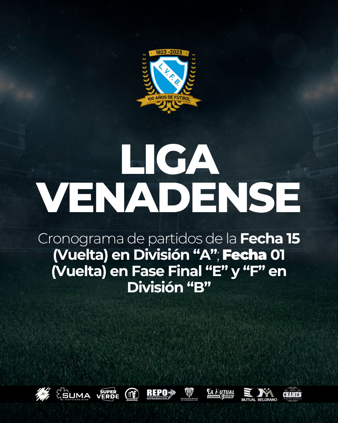 Compartimos el cronograma de partidos correspondiente a la Fecha 15 (Vuelta) en División “A” y Fecha 01 (Vuelta) en Fase Final “E” y “F” en División “B” de la #LigaVenadense
