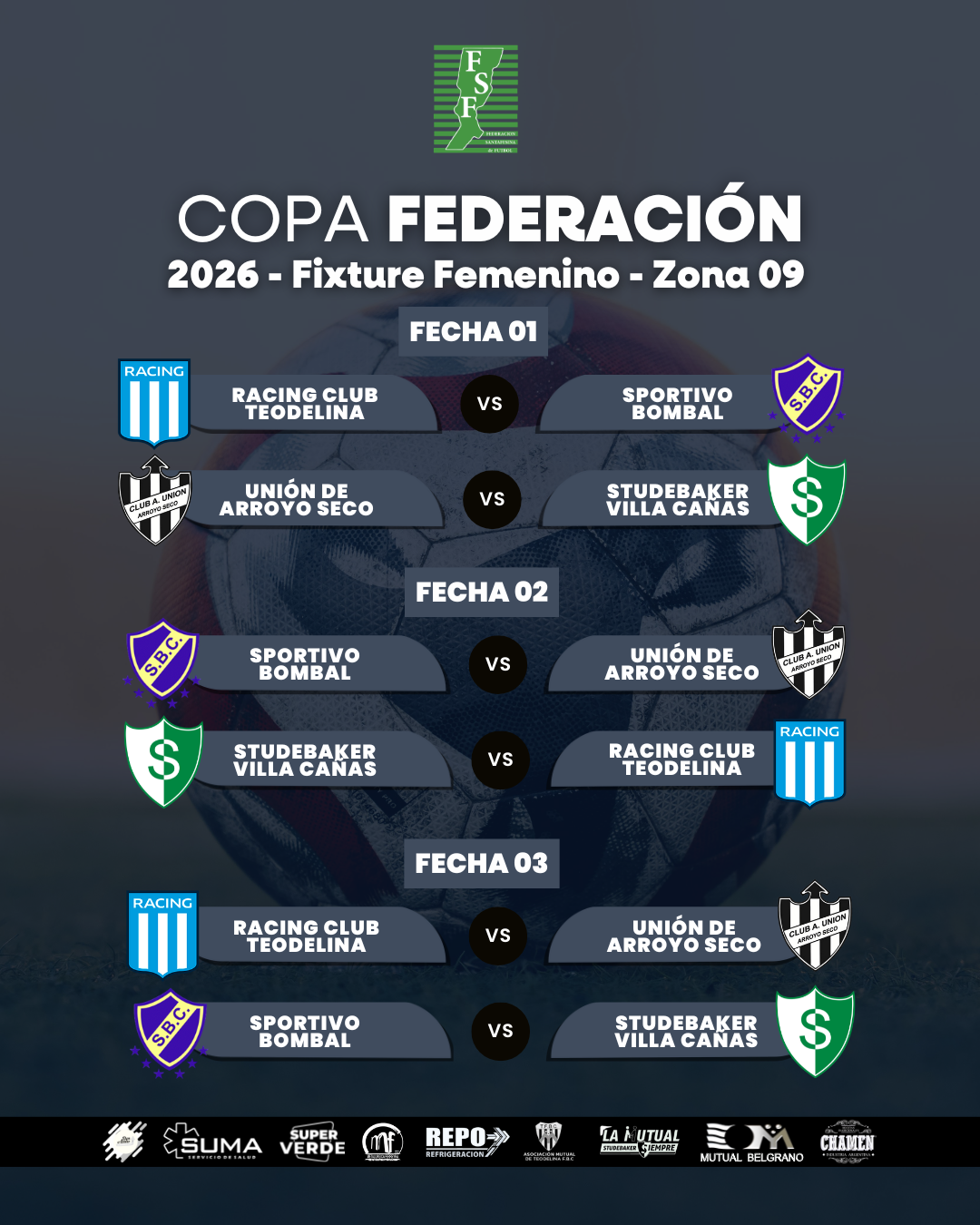 Compartimos el fixture para la Copa Federación Masculina 2026 en la que participan Racing Club, Studebaker VC, Unión y Cultura y Sportsman Carmelense en representación de la #LigaVenadense