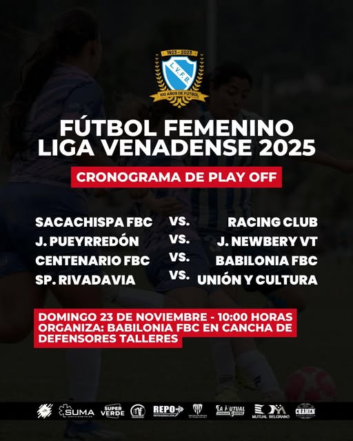 Fútbol Femenino: Play Off en Primera División Compartimos el cronograma de partidos para los Play Off en Primera División del Torneo de Fútbol Femenino de la #LigaVenadense✨