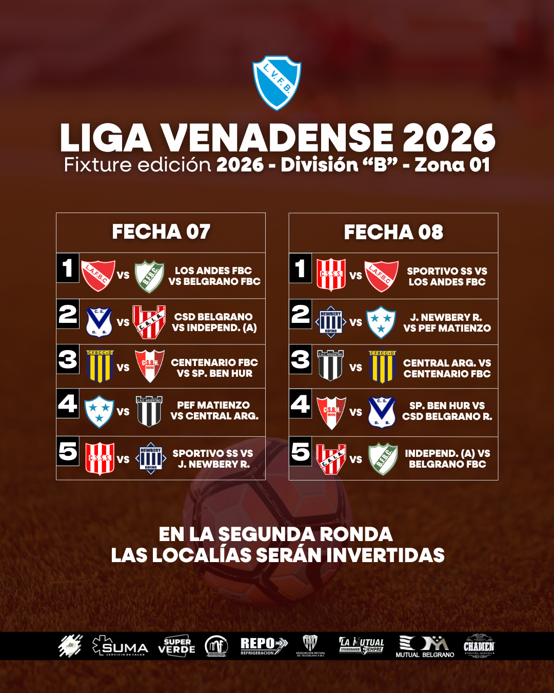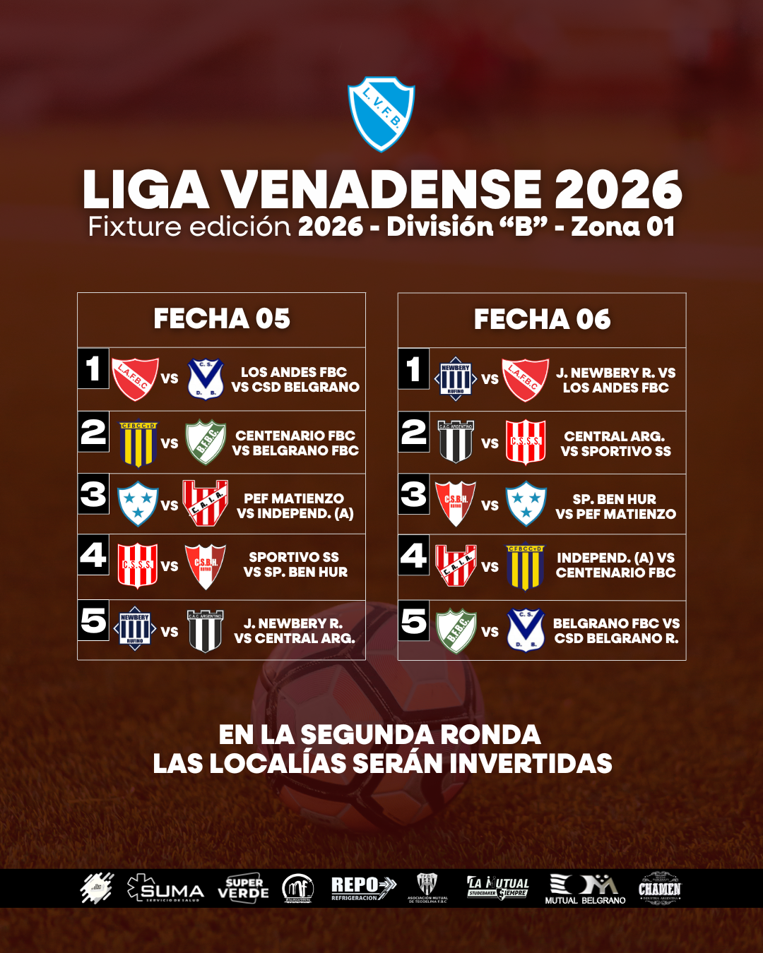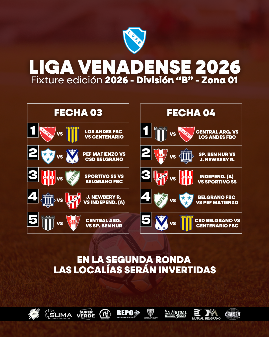 Compartimos el fixture de la Primera División “B”, Zona 01 de la #LigaVenadense de la temporada 2026 🙌🏻