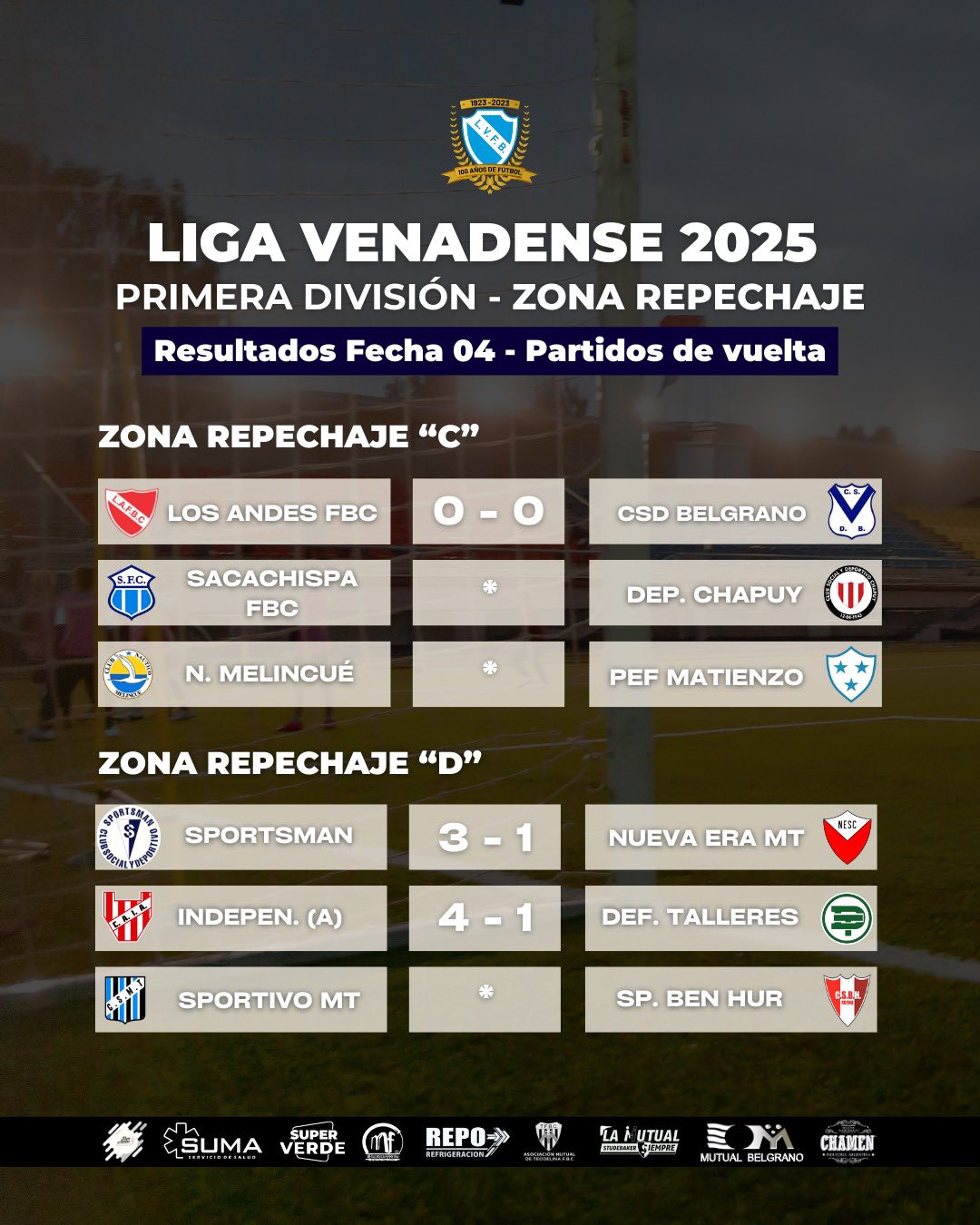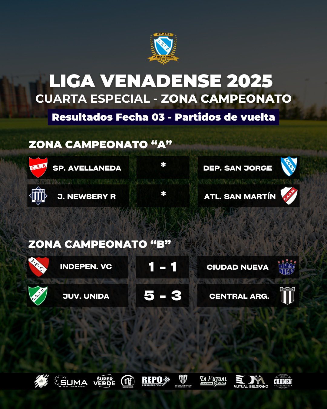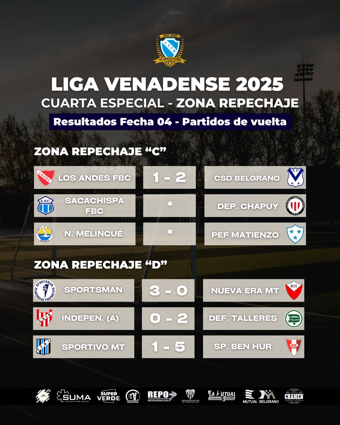 Compartimos los resultados y tabla de posiciones de los partidos que se jugaron por la Fecha 11 (Vuelta) en Cuarta Especial en División “A”, Fecha 03 (Vuelta) en Zona Campeonato y Fecha 04 (Vuelta) de la Repechaje en División "B".