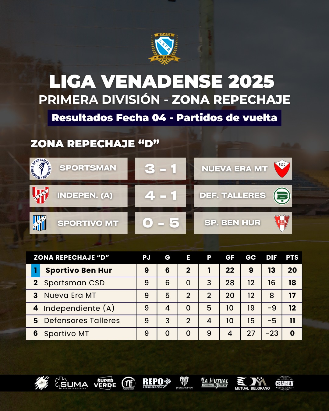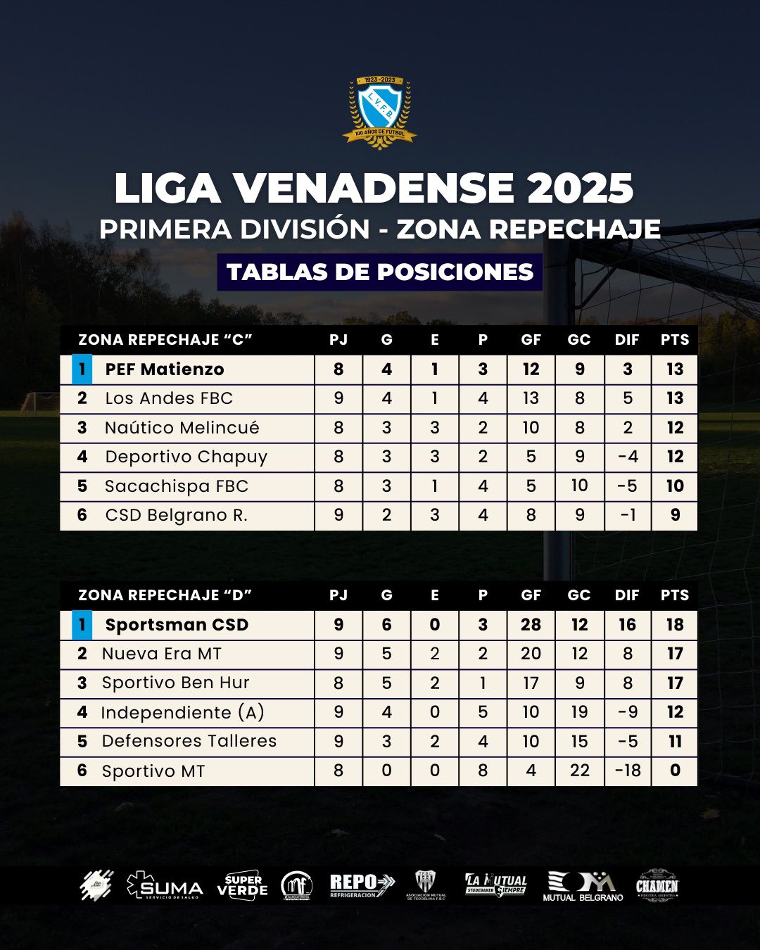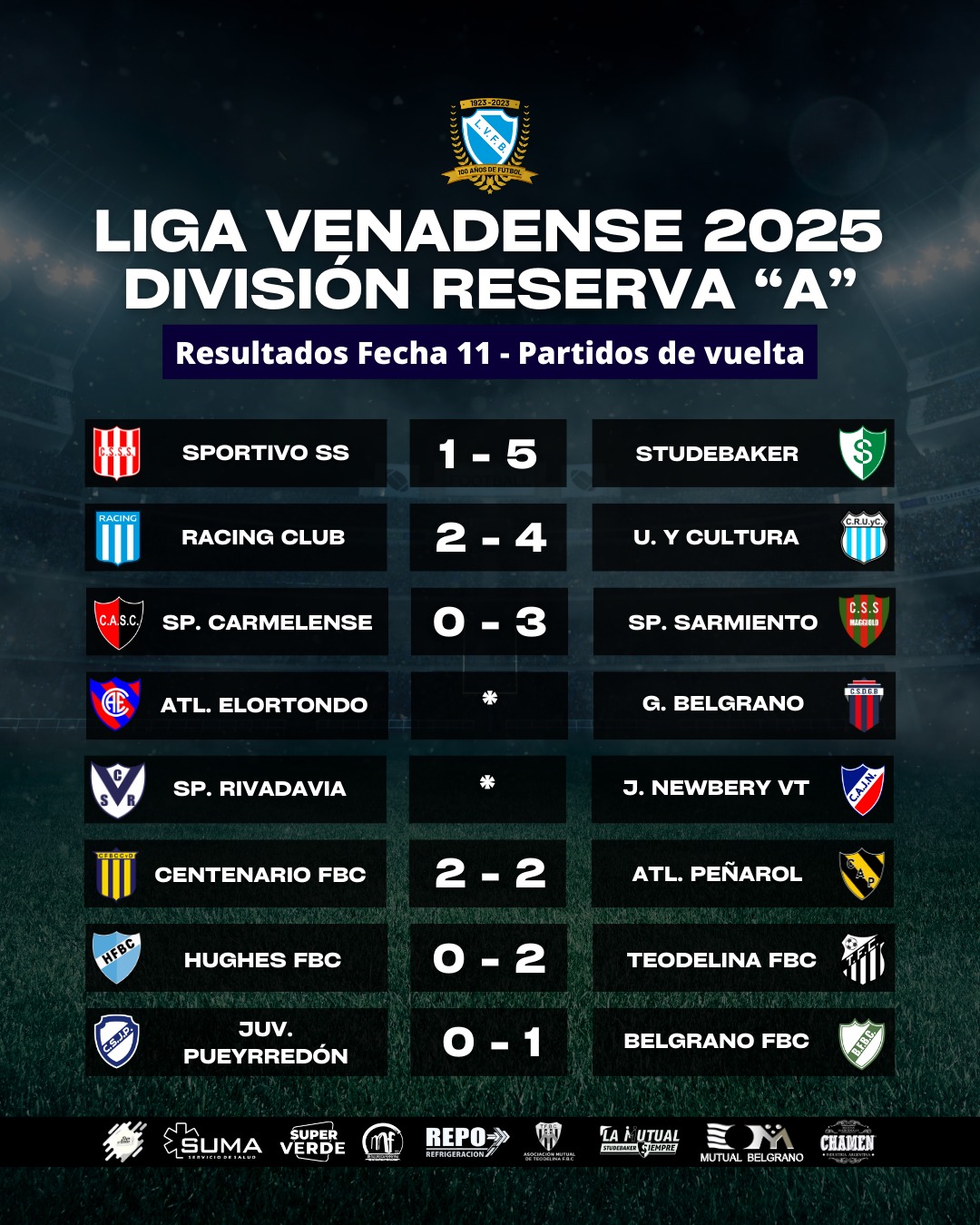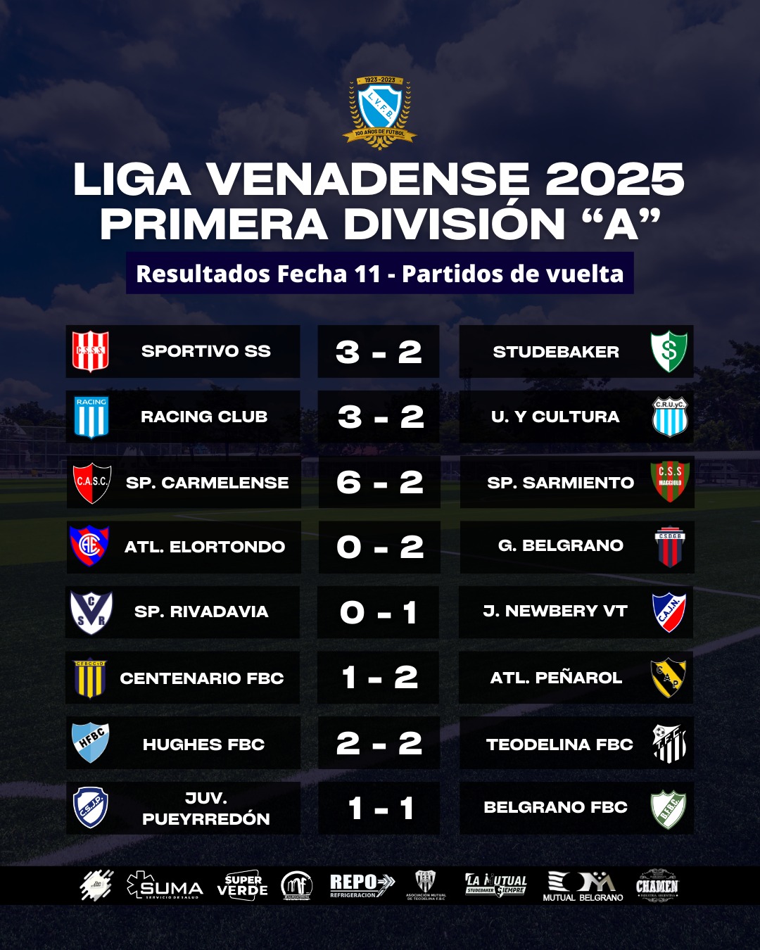 Compartimos los resultados y tabla de posiciones de los partidos que se jugaron por la Fecha 11 (Vuelta) en Primera División “A”, Fecha 03 (Vuelta) en Zona Campeonato y Fecha 04 (Vuelta) de la Repechaje en División "B".