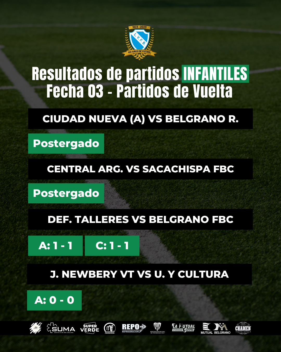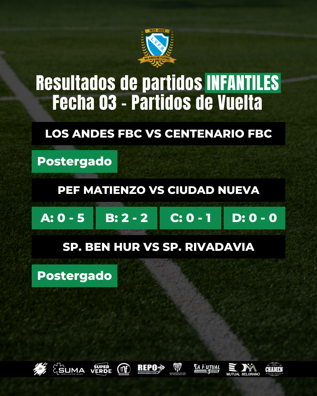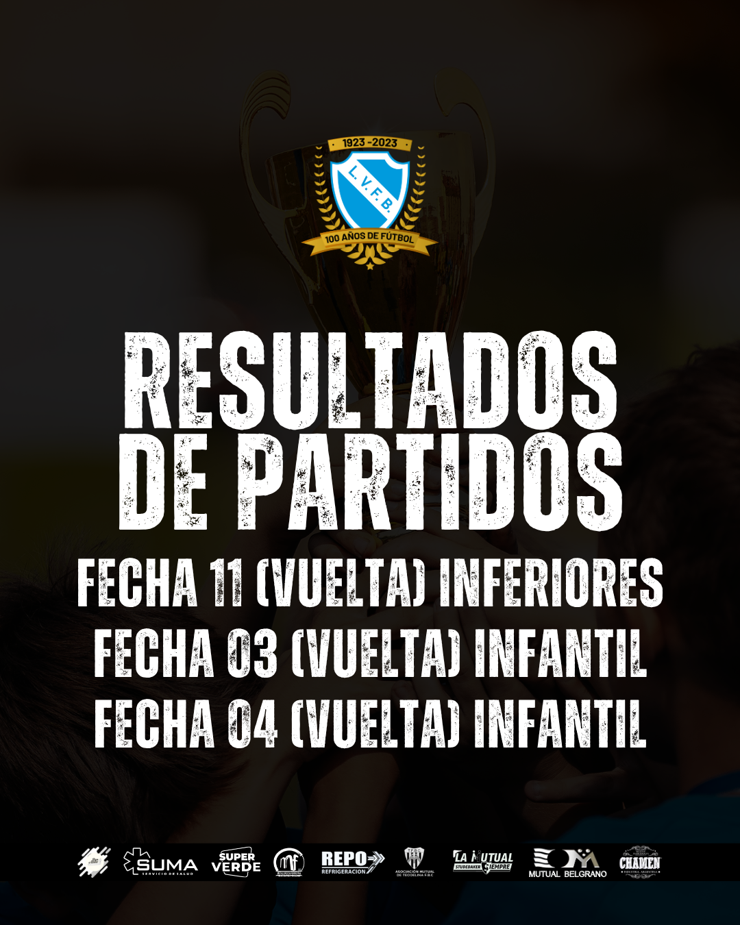 Compartimos los resultados del partido adelantado por la Fecha 11 (Vuelta) en Inferiores; Fecha 03 (Vuelta) y adelantado Fecha 04 (Vuelta) en Infantiles de la #LigaVenadense