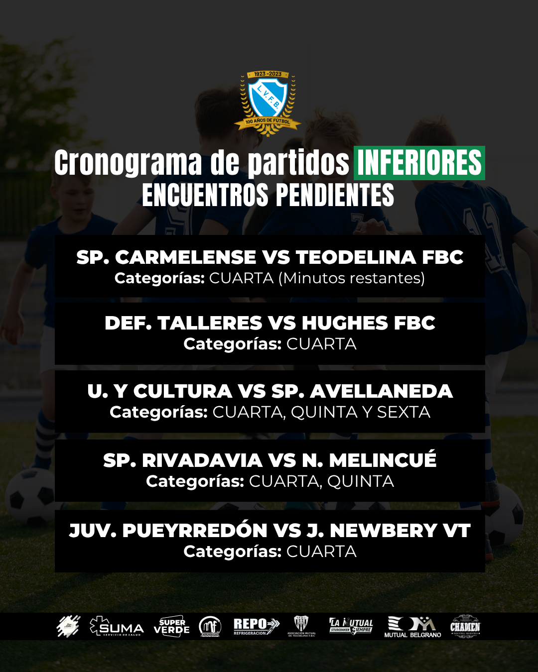 Compartimos el cronograma de partidos pendientes y adelantado de la Fecha 11 (Vuelta) de la división Inferiores de la #LigaVenadense a disputarse este fin de semana.