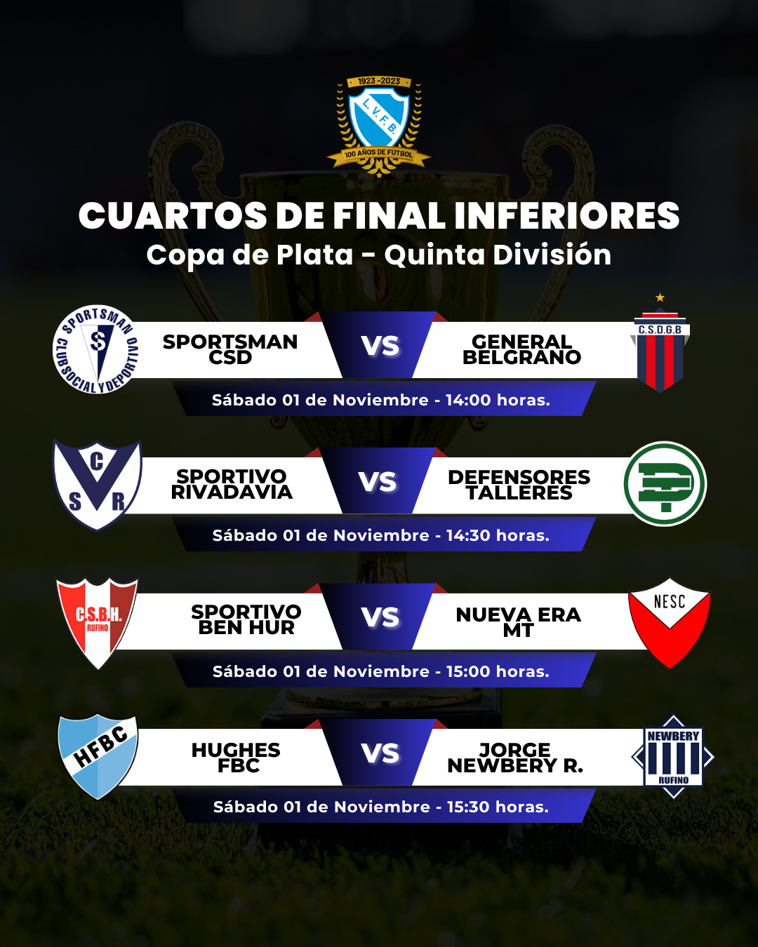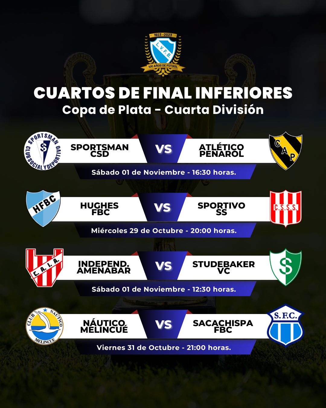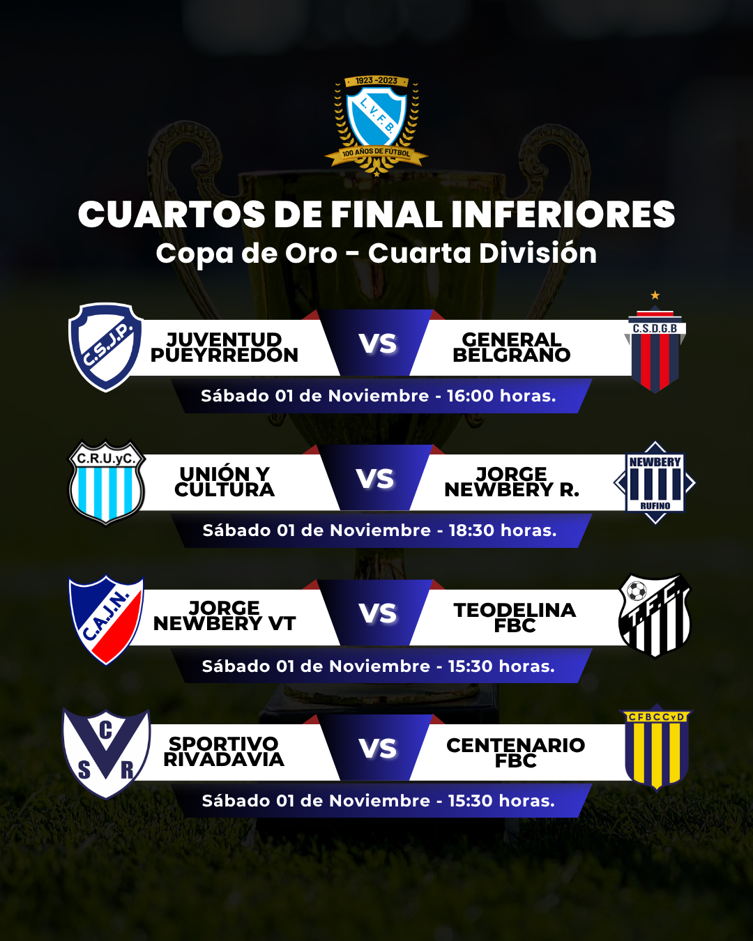 Inferiores 2025: Cronograma Cuartos de Final Vuelta Compartimos el cronograma de partidos de vuelta por los Cuartos de Final en Copa de Oro y Plata de Inferiores en Cuarta, Quinta y Sexta División de la #LigaVenadense