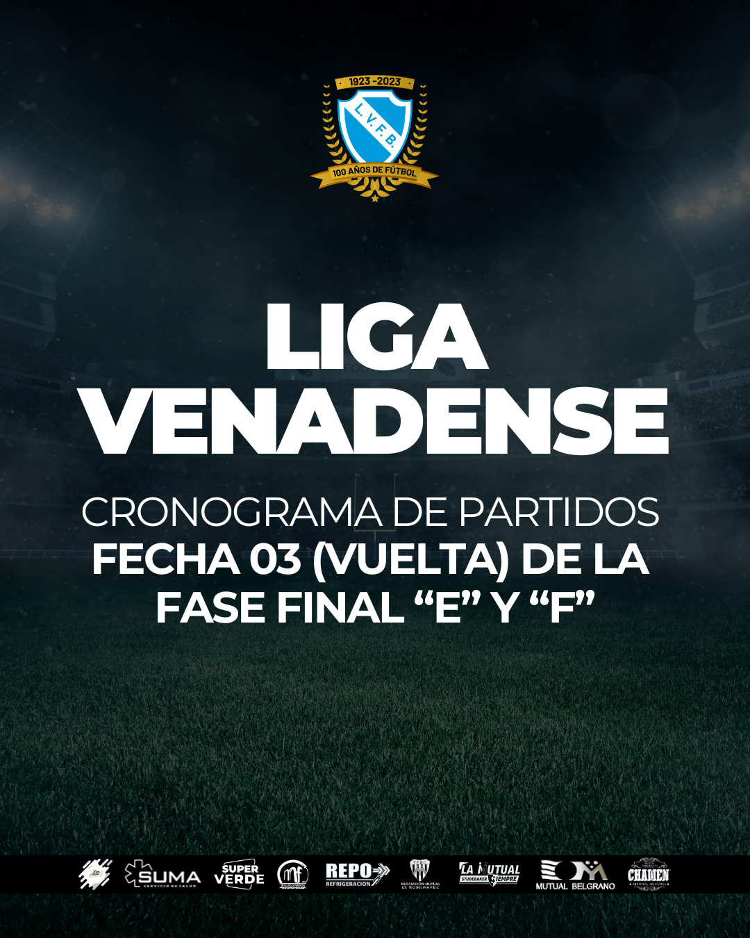 Compartimos el cronograma de partidos correspondiente a la Fecha 03 (Vuelta) en División “B”, Fase Final “E” y “F” de la #LigaVenadense