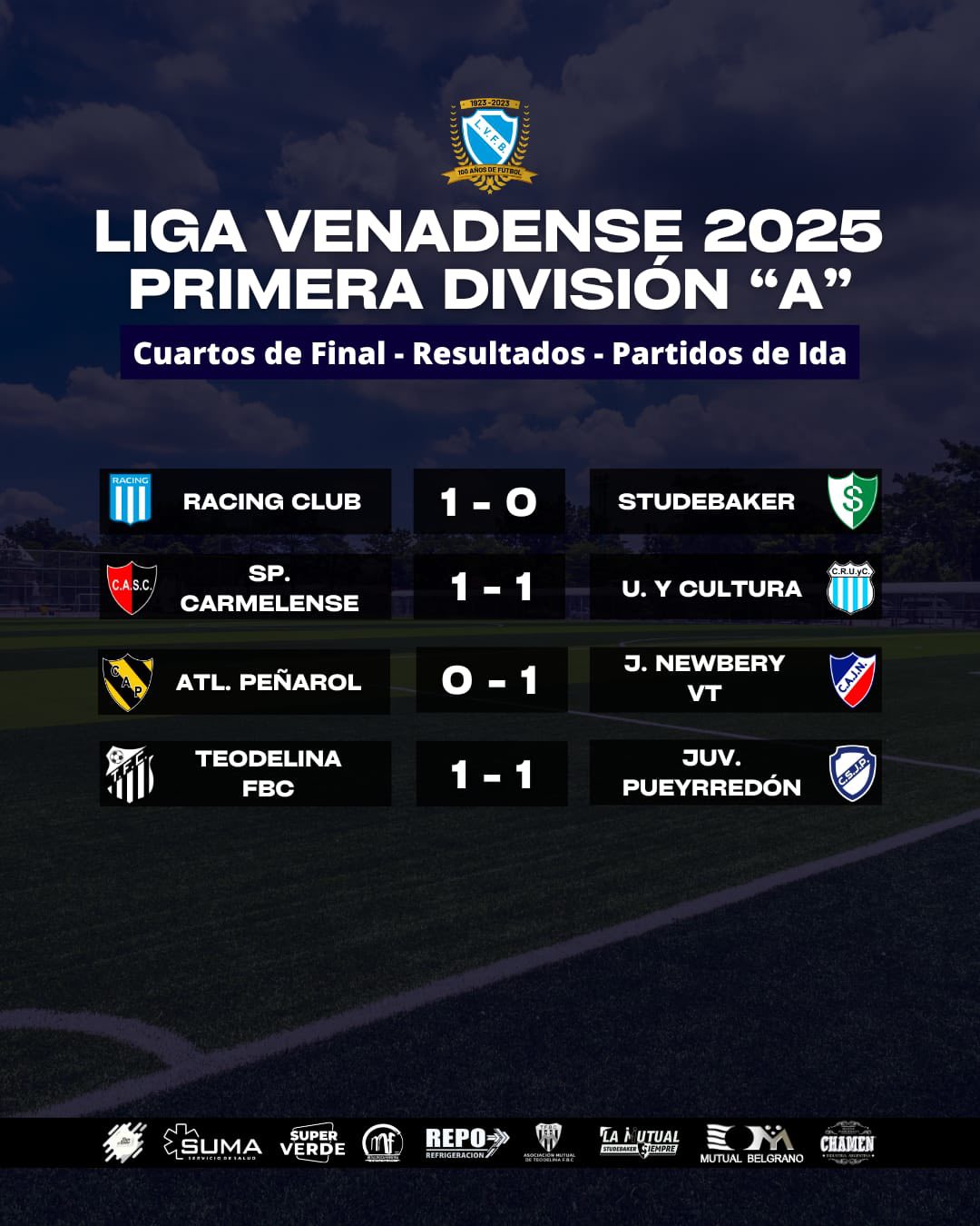 Compartimos los resultados de los Cuartos de Final (Ida) en Primera División “A” de la #LigaVenadense⚽️🙌
