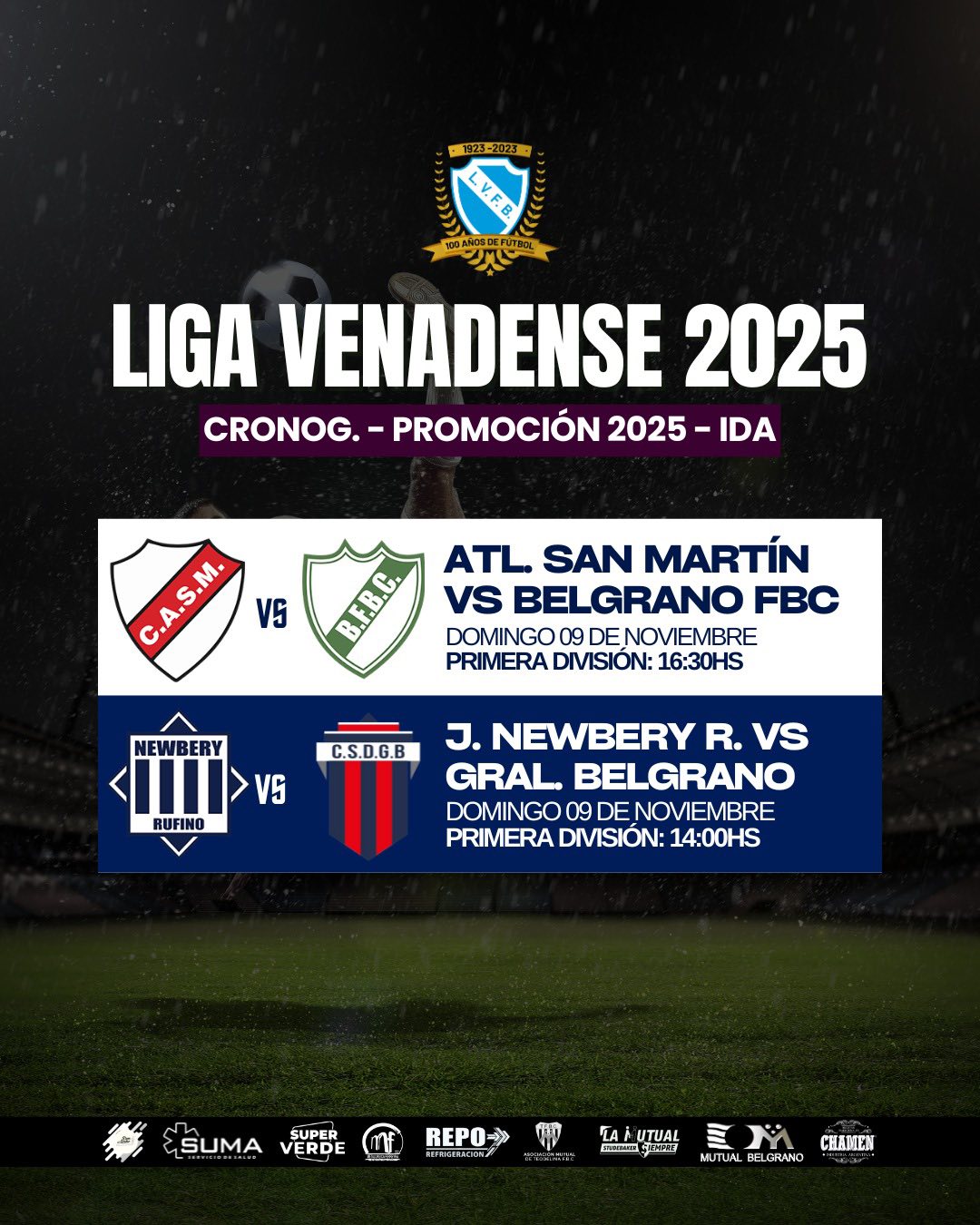 Fútbol 2025: Cronograma de partidos por Promoción Compartimos el cronograma de partidos de la Promoción 2025 (Ida) de la #LigaVenadense✨