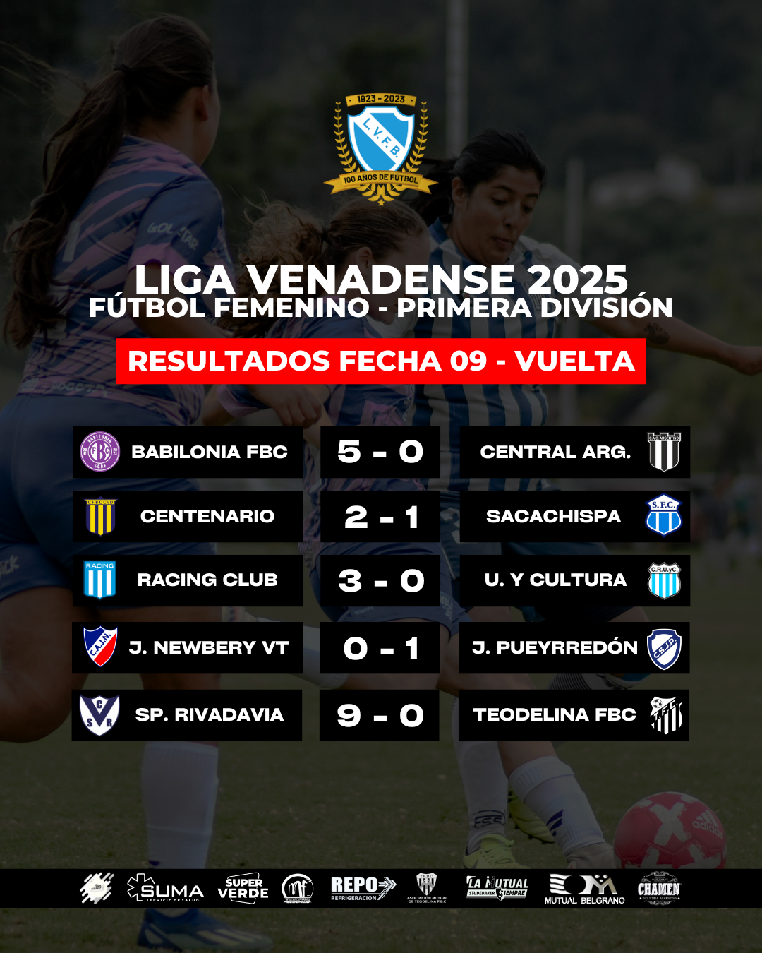 Femenino Primera 2025: Resultados de la Fecha 09 - Clausura Compartimos los resultados de la Fecha 09 (Vuelta) del Torneo de Fútbol Femenino en Primera División de la #LigaVenadense