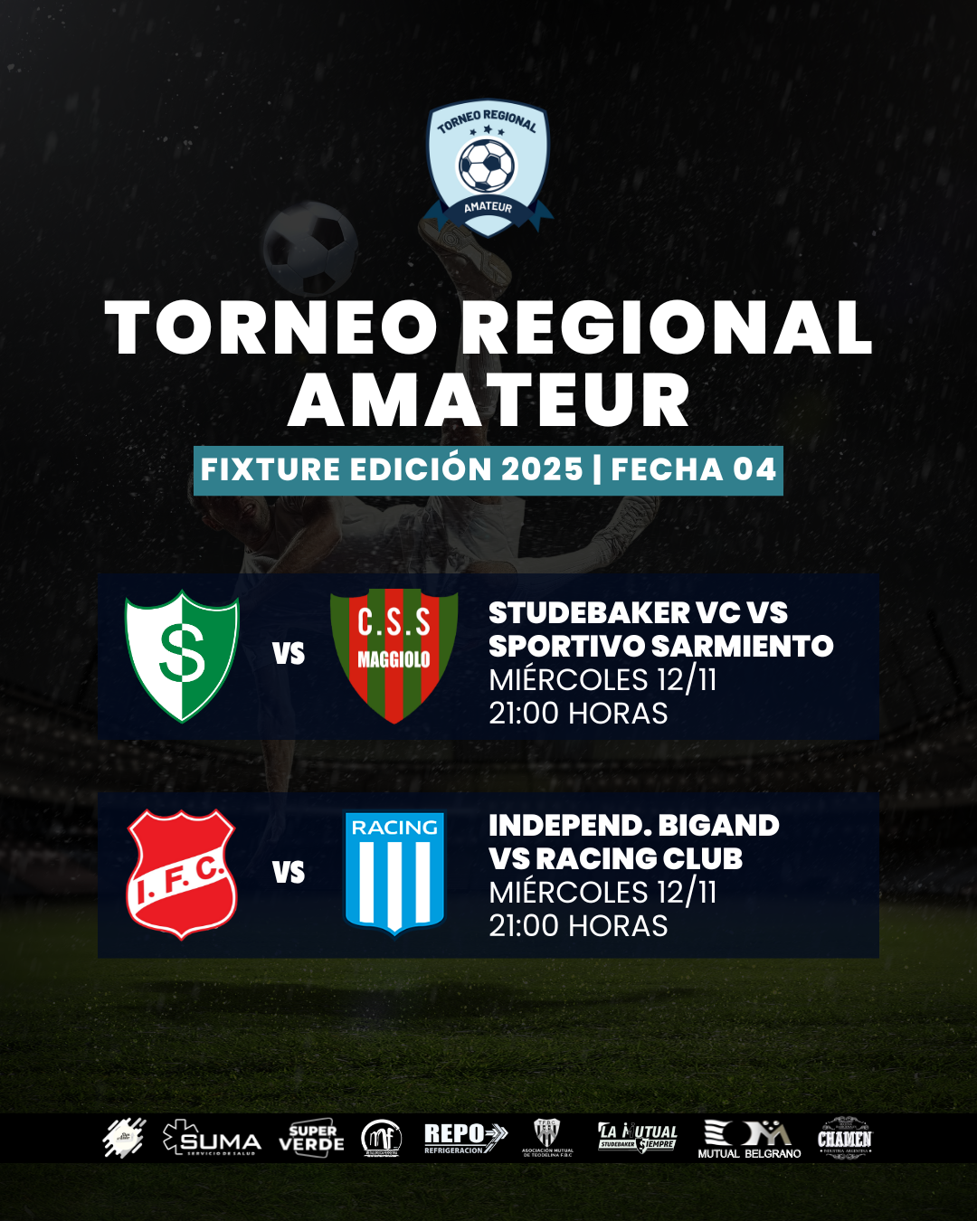 Regional Amateur: Se juega la cuarta fecha Este miércoles se disputará la Fecha 04 del Torneo Regional Amateur en la que participan equipos de la #LigaVenadense✨