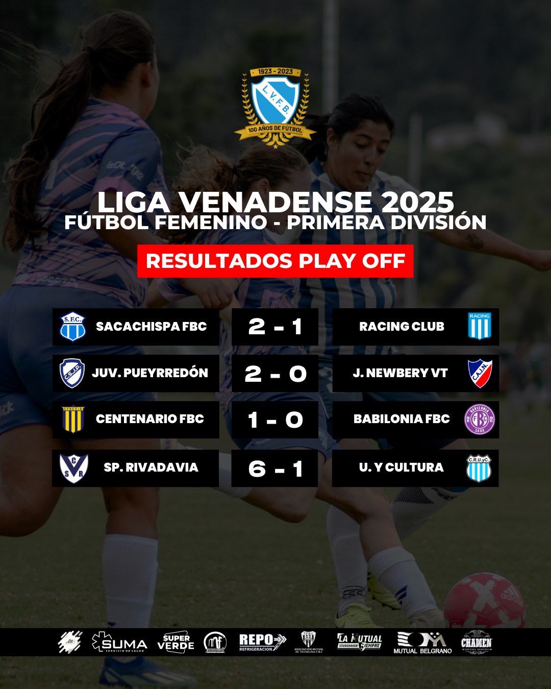 Compartimos los resultados de los Play Off del Torneo de Fútbol Femenino en Primera División de la #LigaVenadense
