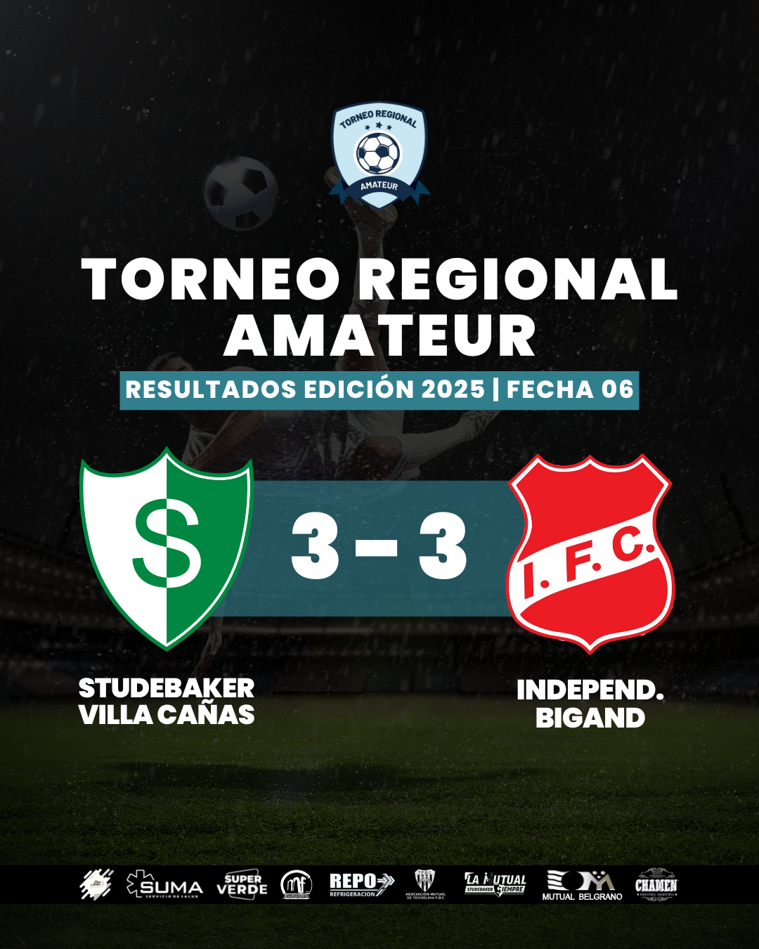 Hace instantes culminó el partido entre Studebaker de Villa Cañas e Independiente de Bigand por la sexta fecha del Torneo Regional Amateur.