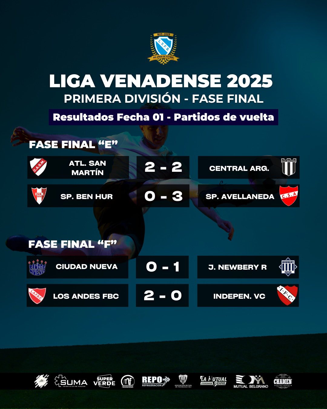 Compartimos los resultados y tabla de posiciones de la Fecha 01 (Vuelta) en Primera División “B” - Fase Final “E” y “F” de la #LigaVenadense