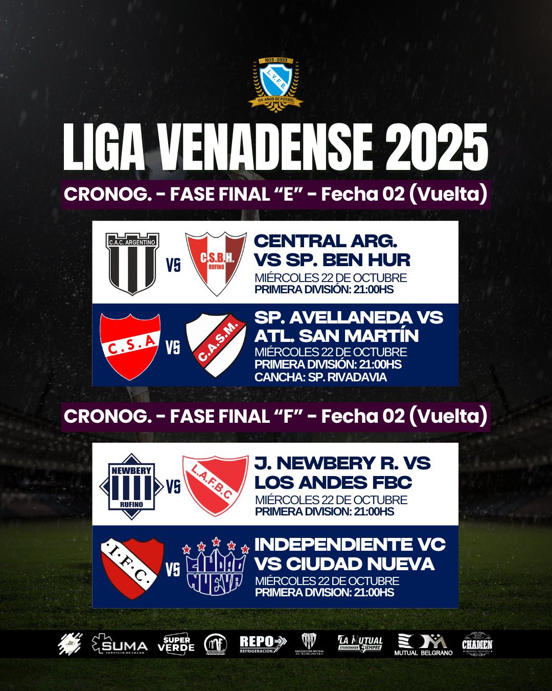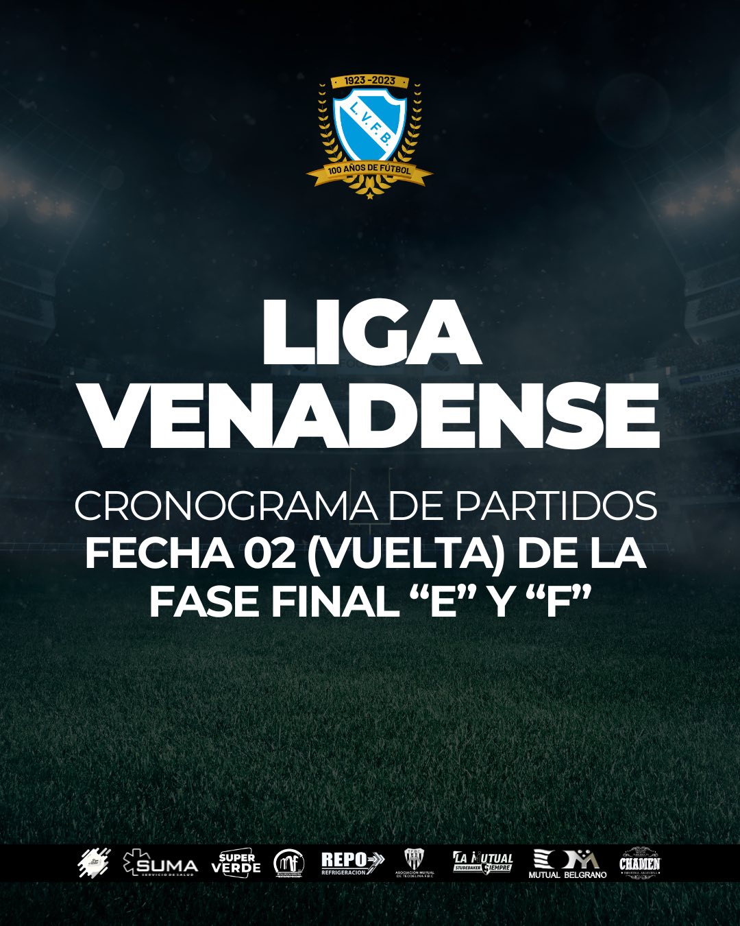 Compartimos el cronograma de partidos correspondiente a la Fecha 02 (Vuelta) en División “B”, Fase Final “E” y “F” de la #LigaVenadense