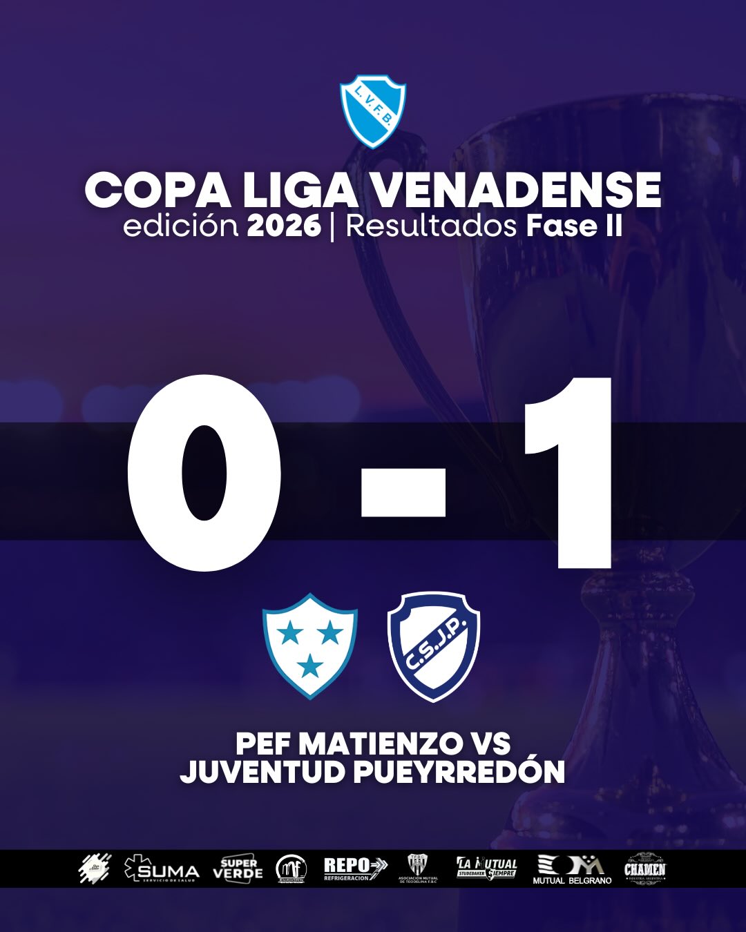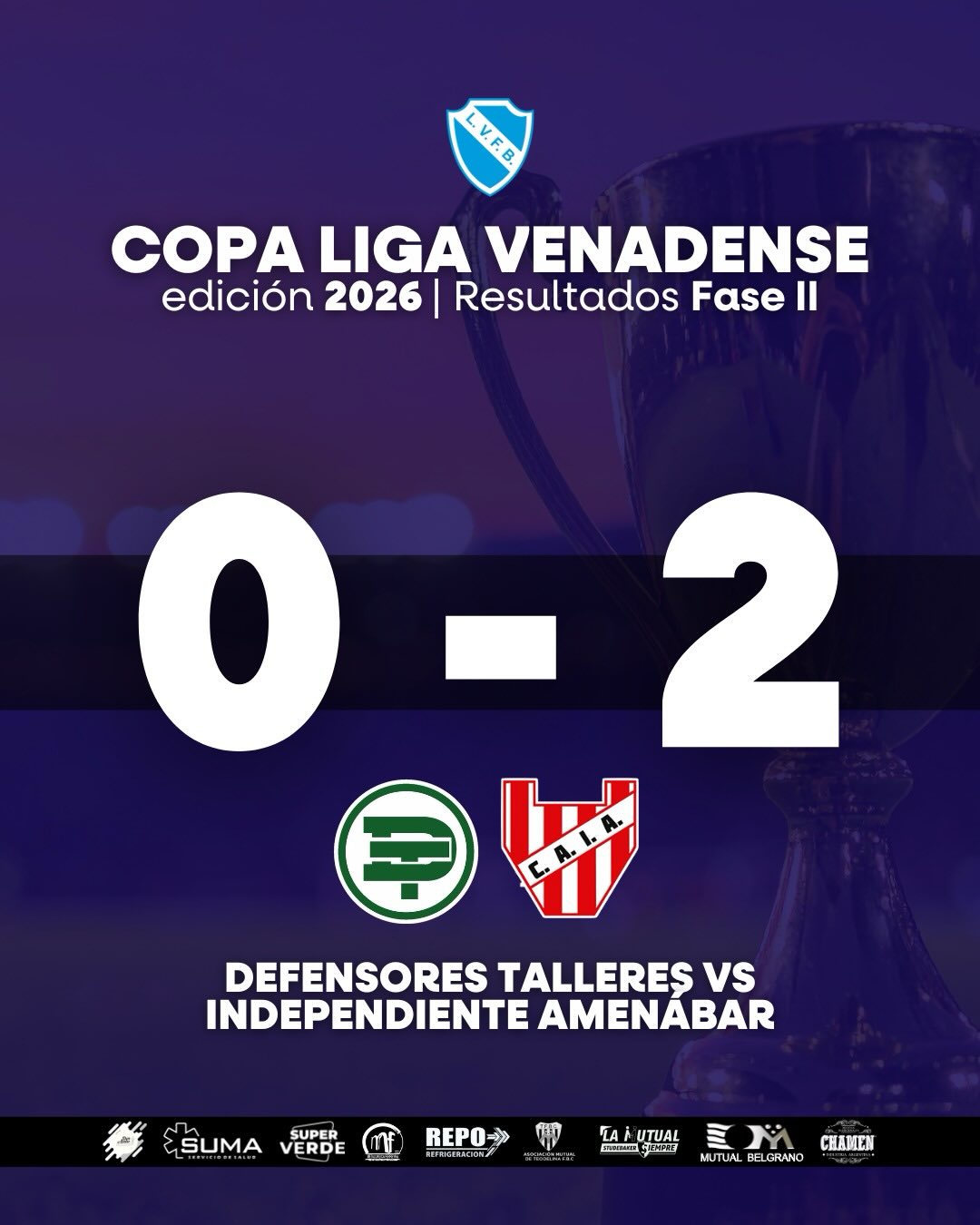 Compartimos los resultados de los partidos por la Fase II de la Copa de la Liga Venadense 2026. El próximo fin de semana, culminarán los encuentros de esta serie.