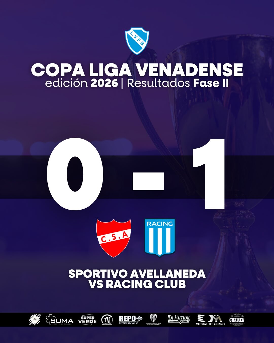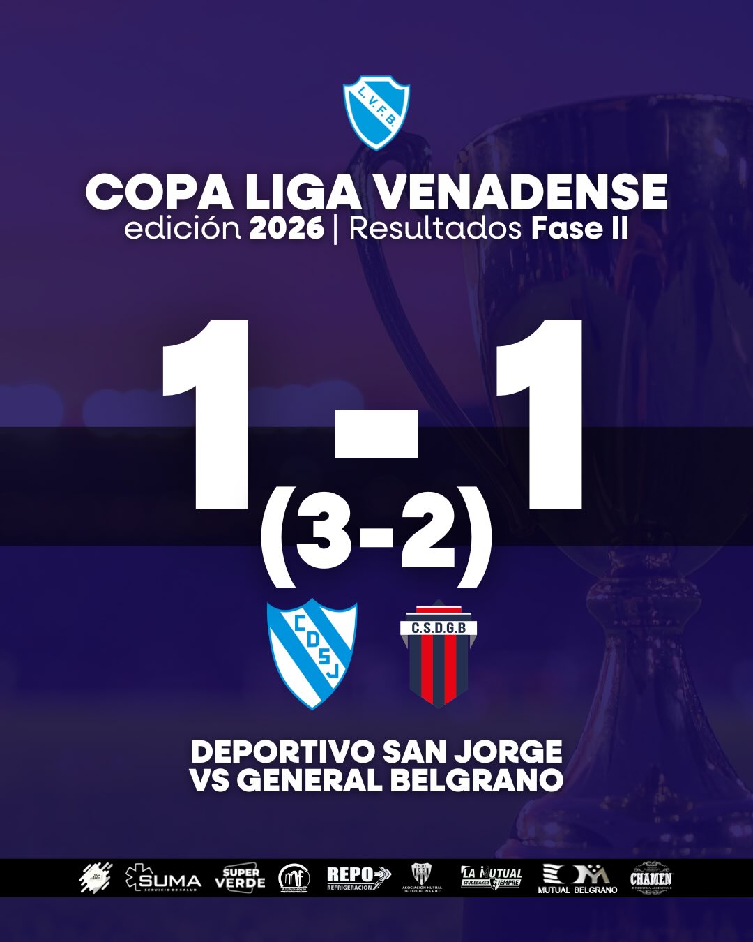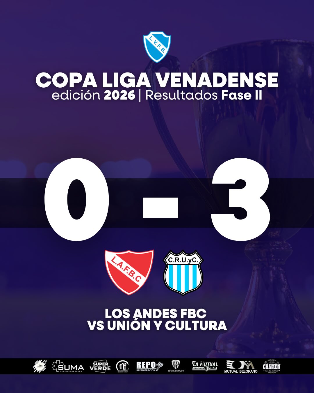 Compartimos los resultados de los partidos por la Fase II de la Copa de la Liga Venadense 2026. El próximo fin de semana, culminarán los encuentros de esta serie.