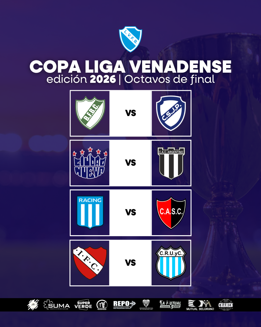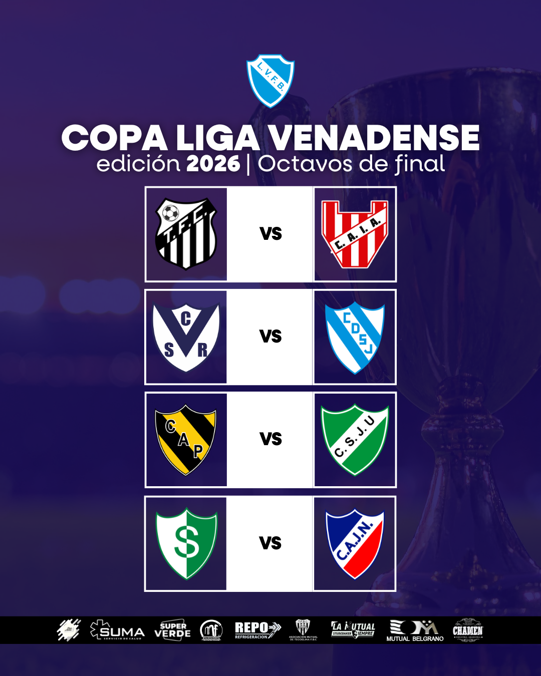 Artículos Copa de la Liga: Fixture de los Octavos de Final Escrito por Liga Venadense de Foot Ball 23 Febrero 2026 NOTICIAS DESTACADAS Por favor, vote Voto 1 Voto 2 Voto 3 Voto 4 Voto 5 Compartimos el fixture de los Octavos de Final de la Copa de la #LigaVenadense. Anterior Siguiente